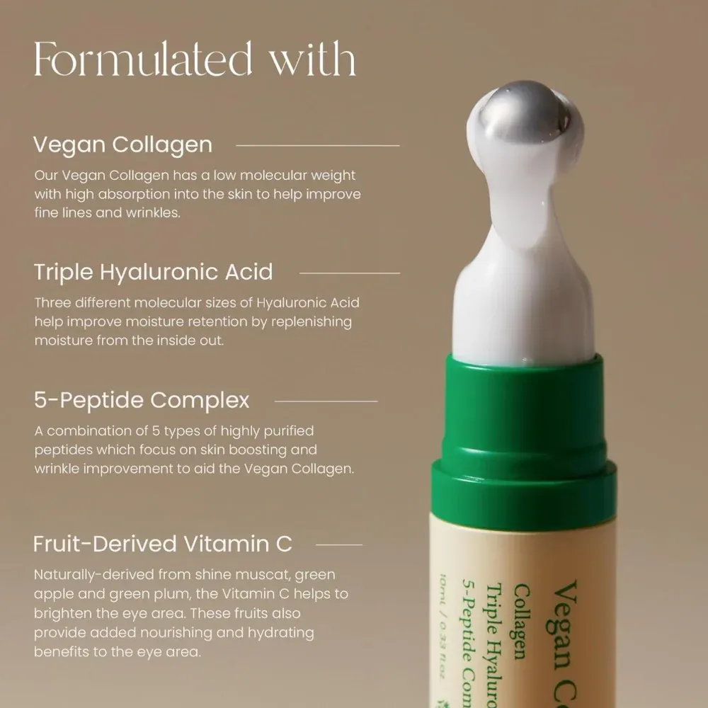 سيروم AXIS-Y Vegan Collagen Eye Serum مصمم خصيصاً للعناية بمنطقة تحت العين الحساسة، حيث يحتوي على الكولاجين النباتي مع حمض الهيالورونيك الثلاثي لترطيب البشرة وتقليل مظهر الانتفاخ والهالات السوداء.